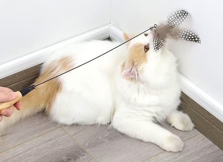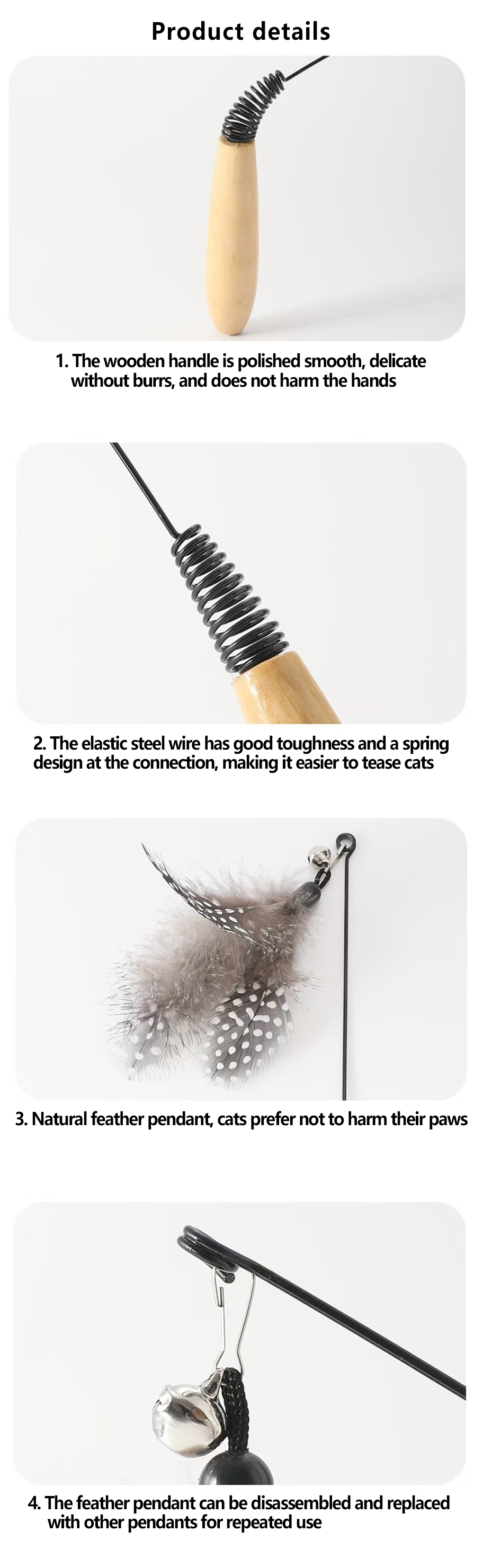 Solid wood handle + durable steel wire, replaceable feather design, long-lasting playability. Stimulate your cat’s hunting instinct, release energy through interactive play, and protect your pet’s health and vitality!