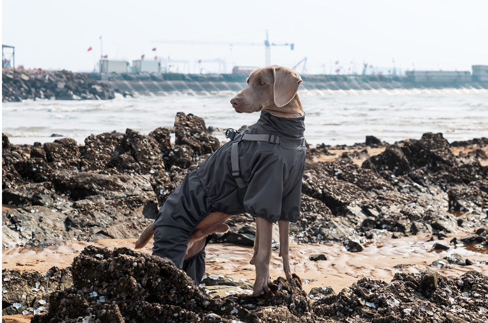 佩戴舒适: 袖口和尾巴采用松紧带设计,紧贴狗的身体而不会感到束缚,有效防止水进入。高项圈设计更好地保护狗的脖子,挡雨。内衬舒适、干燥,由网眼或柔软织物等材料制成,不会粘在皮肤或毛皮上,即使在雨中也能让狗保持舒适而不会感到闷热。