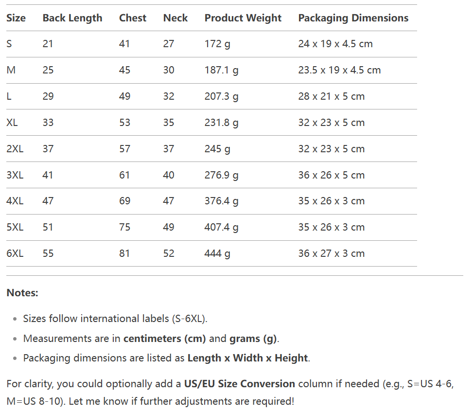 2XL, 3XL, 4XL, 5XL, 6XL, L, M, S, XL